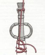 Paso 4: Ponga uno o más cotes por detrás del amarre de chimenea por el cabo muerto como medida de seguridad. (Esto forma una vuelta de cote que no se resbalará bajo una tensión). | |