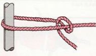 ![]() Paso 1: Haga una gaza completa alrededor del objeto y traiga el cabo corredizo por debajo del cabo muerto. El nudo ballestrinque se puede formar alrededor de cualquier objeto. |