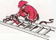 ![]() Figura 28: Para amarrar una escalera con una cuerda, forme un lazo grande asegurado por un as de guía, y ponga el lazo entre los peldaños de la escalera alrededor de un tercio de la distancia desde el extremo que va a ser izado. . |