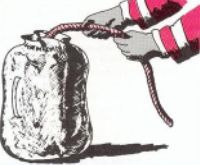 tirar la cuerda desde arriba únicamente en situaciones de emergencia). Algunos bomberos prefieren enrollar su cuerda de una manera diferente. Dos críticas principales al método arriba descrito son los numerosos dobleces y la falta de circulación de aire en caso de que la cuerda se moje. El uso de cuerdas por los bomberos requiere que éstas estén listas para el uso en todo momento y de una manera que asegure que estén libres de enredos y torceduras. Para cumplir con este requerimiento, a veces es necesario sacrificar algunos de los principales fundamentos de cuidado y mantenimiento de cuerda, por el hecho de tenerla en un bulto compacto que permitirá desenrollarse parejamente cuando se le necesite. Otro método que ha sido usado satisfactoriamente por algunos cuerpos de bomberos es transportarla cuerda dentro de una bolsa, como se muestra en la Figura 39. El extremo de la cuerda se puede agarrar, mejor si tiene un empalme en forma de lazo o un lazo formado por un nudo, cuando se deja caer la bolsa desde el techo o los pisos superiores. Mientras desciende la bolsa, la cuerda se desenrolla de una manera ordenada. La bolsa puede tener un cordón en la boca, para facilitar su transporte. Un tamaño común para las bolsas es de 30 cm (12 pulgadas) de diámetro por 81 cm (32 pulgadas) de altura. Esto proveerá una capacidad adecuada para una cuerda de manila de 20 mm (3/4 pulgada) de diámetro por 45 metros (148 pies).