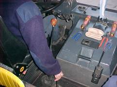 control trasero. La palanca de acople de la bomba, control de aceleración y